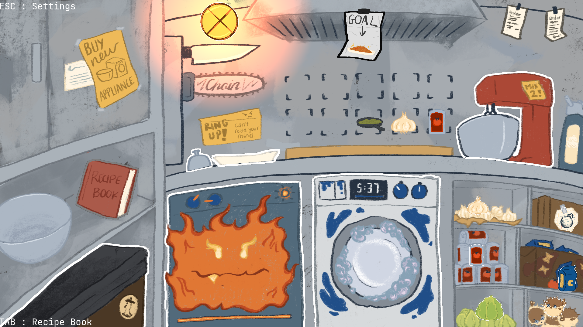 Mix, Cook, Wash, Explode, Diffuse Bombs, Flood the kitchen. Accessibility, Screen Resolution, and Audio settings are added to make the experience best for everyone. Good Luck!